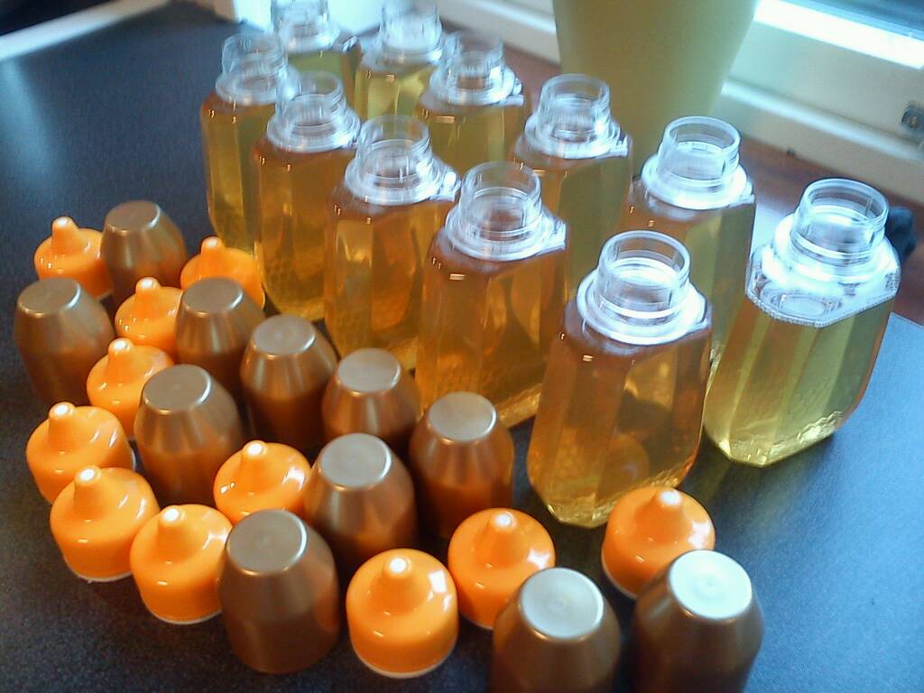 Första slungningen resulterade i att allt inte fick plats i 40 kg tunnan. Kvar blev en sisådär 3 kg som fått stå i en rostfri bunke. Men nu har det skaffats pipflaskor så nu ska den tappas upp!